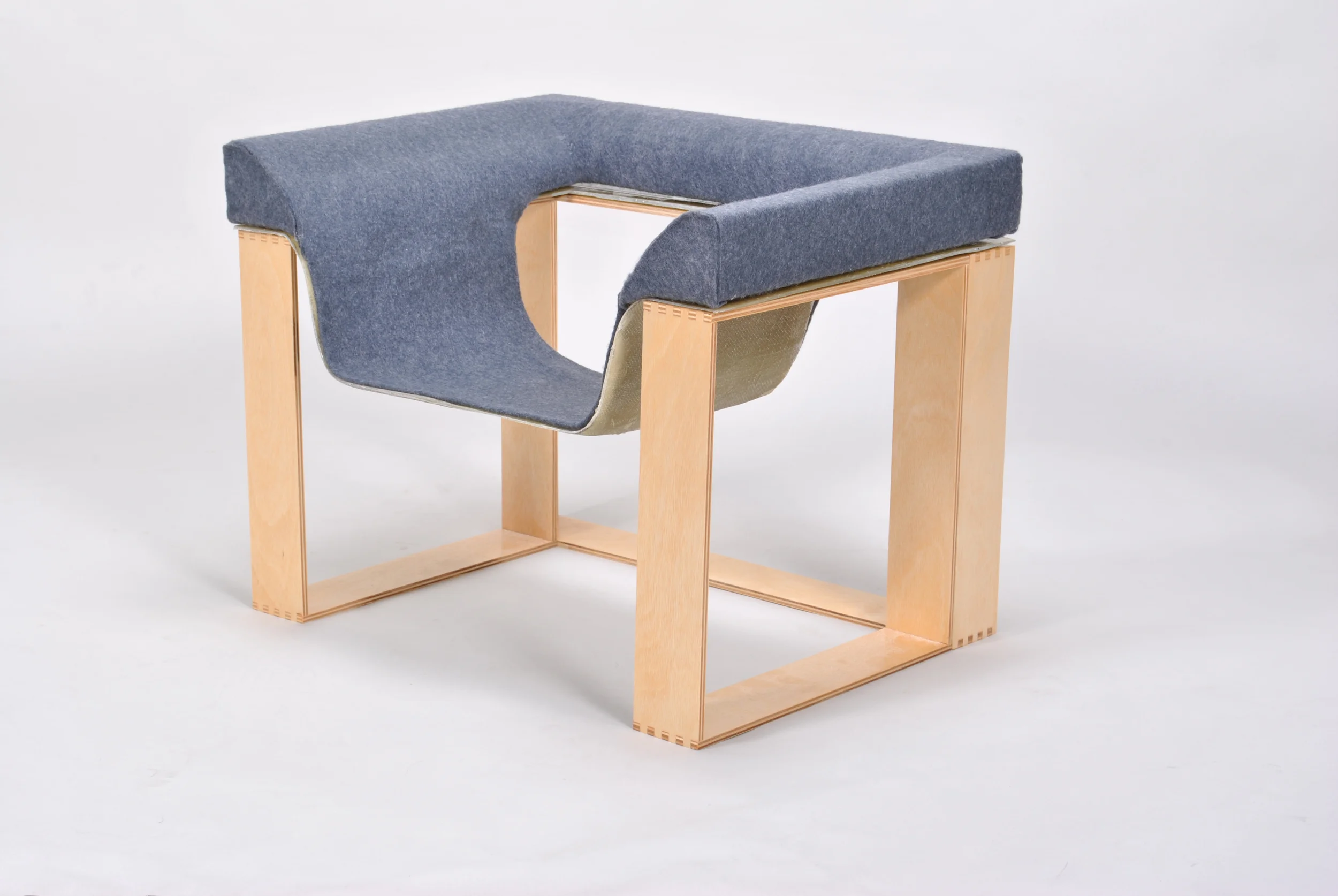 This design incorporates three materials; wood, fiberglass, and felted wool. Working with Upstate NY furniture manufacturers, the goal was to design a chair that could be included into a product line that they offer. This chair was designed to fit within the product lines of manufacturers Offi and Icon.